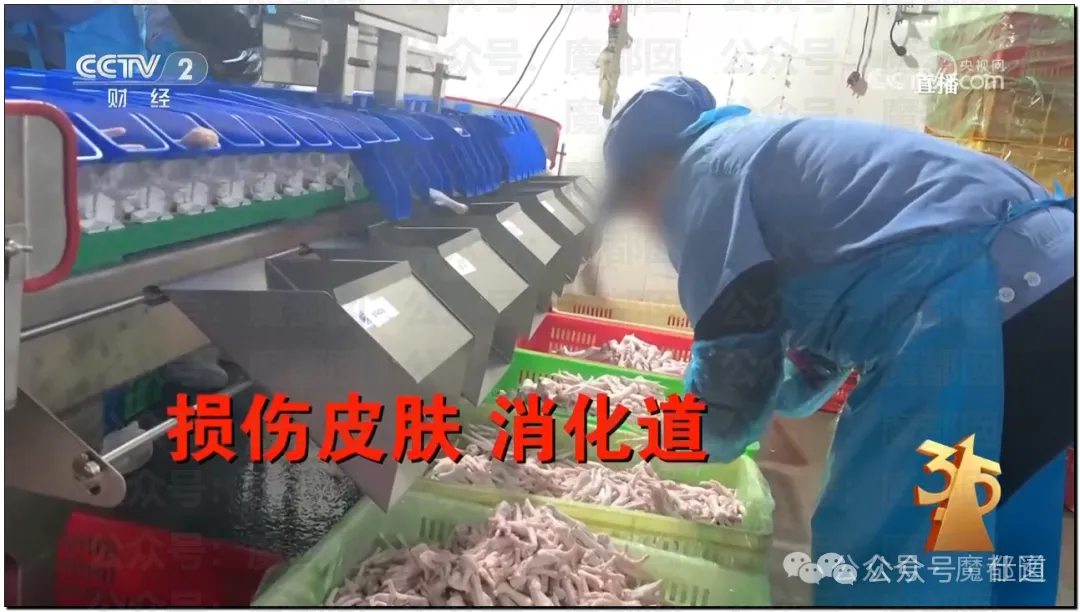更离谱的是,为了让鸡爪看起来白白胖胖、特别新鲜,他们竟然用工业双氧水直接浸泡!