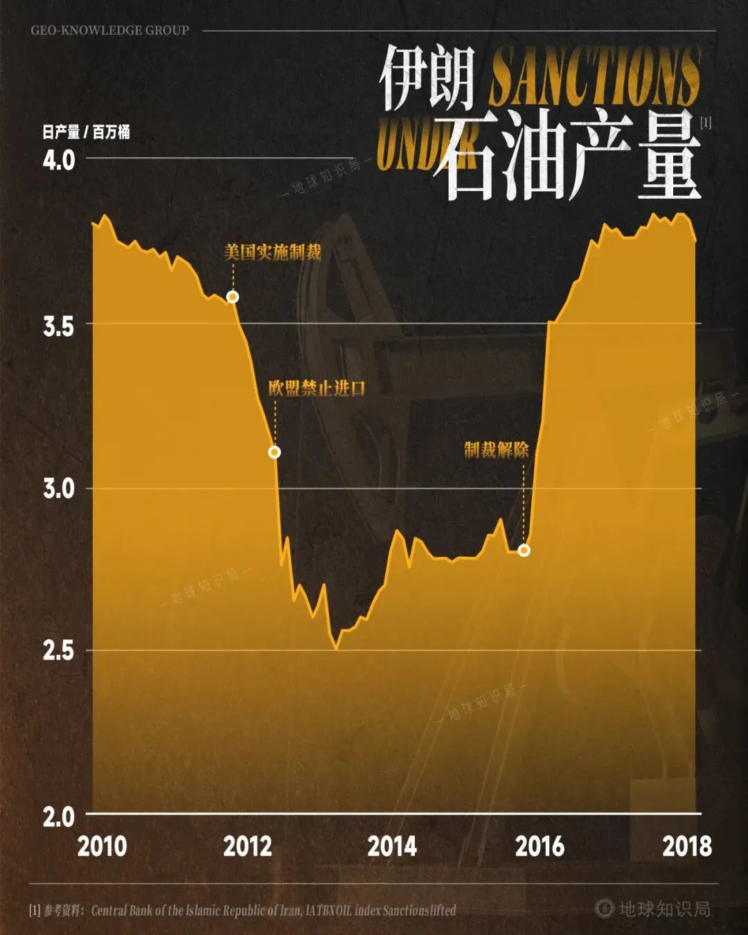在国际制裁的影响下,伊朗的石油产量大幅下降▼