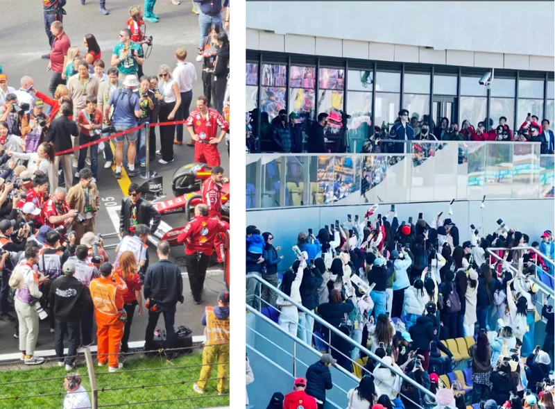 围场外的人流量,因为 F1 今年巨高的热度以及诸多明星的到场,暴涨到了夸张的数量级。喊车手名字的、喊哥哥名字的以及在停车场看车展的人们全都挤在了一起,甚至发生了人群冲卡入场的事。