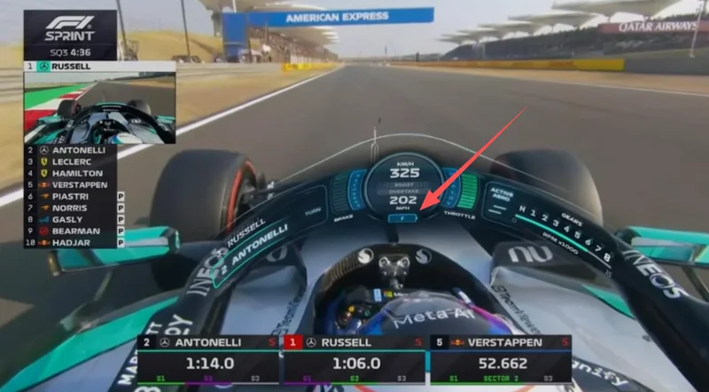如果你周末看了比赛的转播,那你应该能发现在车手视角的模拟车速表下方有这样一个电池容量的标志,这代表着电能相比之前角色更加重要了。