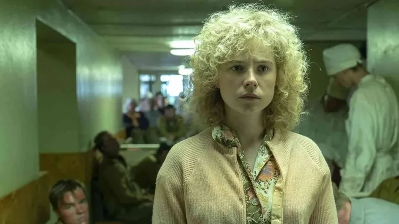 《切尔诺贝利》,她饰演的消防员妻子,在安抚垂死的丈夫时,不知不觉让腹中胎儿暴露在辐射中。