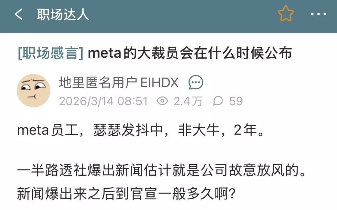 3. 细读TA的发言:“对理论方案的推测性报道”,侧面肯定了裁员方案已经在计划了。只是具体数字没确定。这和”20% or more”是符合的。至于为什么不确定,还有个”or more”,其实很好理解。因为Meta也不知道下一代Gemini,gpt,Claude有多强,它需要花多少钱赶上甚至超过。甚至GDM自己也在疯狂卷加速迭代,他们自己都不知道。