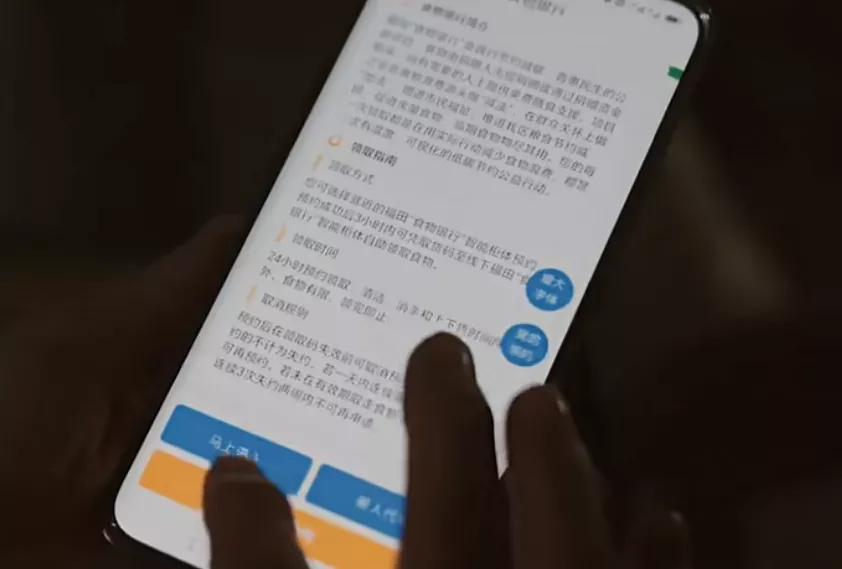 食物发放优先匹配那些真正有需要的人,他们通过APP验证身份并预约之后,就可以自行到24小时开放的柜机领取,行动不便的还能让亲属代领。