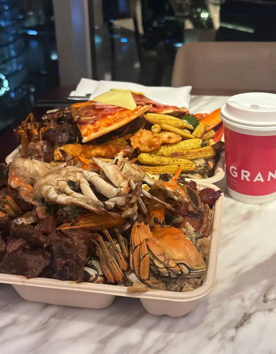 某些酒店甚至推出“经济实惠”版的盲盒,20块钱就能带走一大盒烤羊排、大虾等“珍贵食材”,只要盖子能盖上,想拿多少拿多少。
