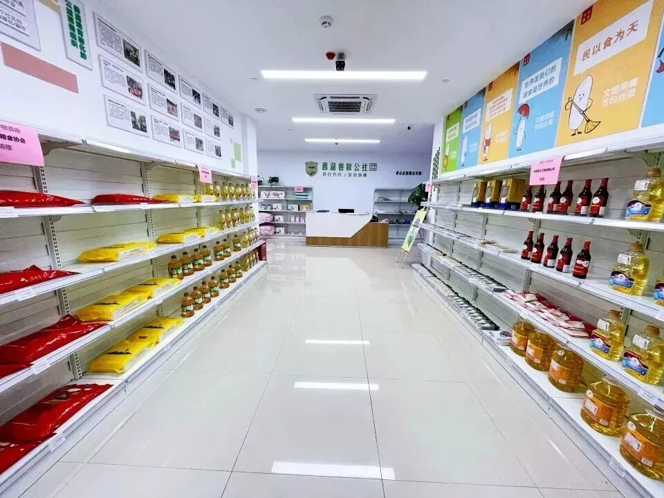 浙江杭州的“西湖善粮公社”,线下有着很大的门店,货架上摆满了各类商品,俨然像是一个小超市。
