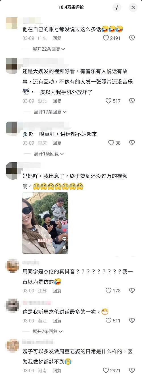 昆凌的影片PO出后,引来不少网友留言表示「他在自己的帐号都没说过这么多话」、「周同学是杰伦的真抖音?我一直以为是彷的」、「这是我听周杰伦讲话最多的一次」。