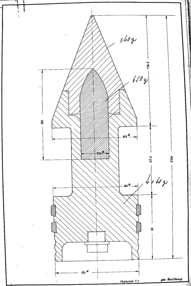 弹体部分由标准结构碳素钢(S-55、S-60、st. 08 或 st. 10)制成。与用于制造杀伤榴弹(Frag)的钢材一样,这类弹体用钢不进行热处理。弹体尾部的空心设计以及中段的环形槽有助于减轻重量,否则这些多余的质量会成为 “寄生重量”,降低传递到目标上的有效能量。与所有其他的 APCR(硬芯穿甲弹)或 HVAP(高速穿甲弹)弹头一样,弹体的主要作用是作为载体,在火炮发射过程中保护和支撑质地较脆的碳化钨弹芯,并防止在粗暴搬运过程中造成损坏。