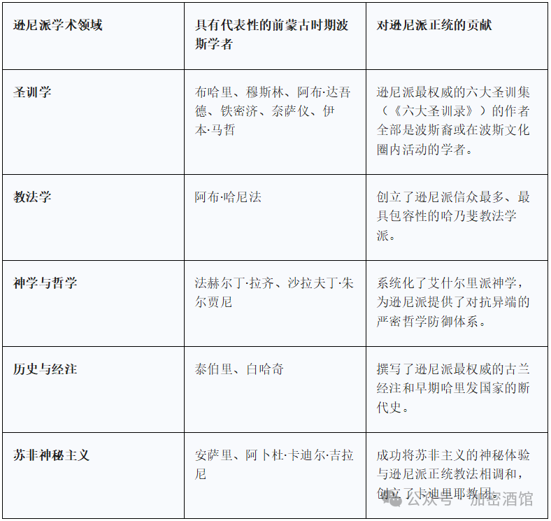 表:前蒙古时期波斯学者对古典逊尼派正统核心知识体系的统治性贡献