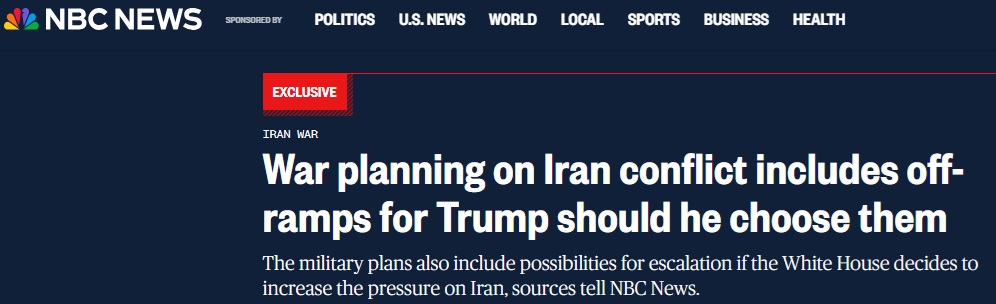 NBC News3月16日最新发布独家报道,据六名了解相关计划的人士向透露,美国军事官员在常规战争规划中已纳入一些选项,以便总统川普若决定这样做,可以结束与伊朗的冲突。到目前为止,他还没有这样做。