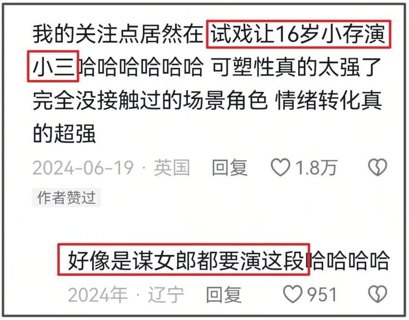 当时刘浩存一脸青涩,嘴里说的台词却是“为什么不能离”,对方的台词也展现了他的角色是个出轨男。刘浩存在被对方拒绝之后,确实也哭出来了。演想逼宫上位的第三者,又被对方骂哭,和傅闱玮爆料的试戏内容全都对上了。