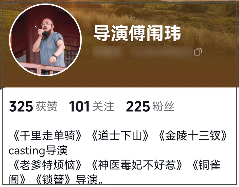 傅闱玮简介写的是《金陵十三钗》的选角导演,他爆料自己当年在张艺谋工作室的时候,负责选新人女演员和素人女演员,几乎天天都在扮演一个“出轨的渣男”。