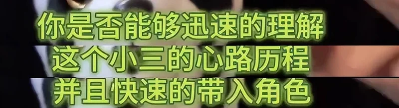 而副导演就负责演出轨男,不让女方上位,逼哭对方。测试对方能否理解小三的心路历程,能否在被“男人拒绝的时候”,表现出情感爆发力。傅闱玮还觉得这个片段很好,他测试过上千甚至上万人,这个片段测试女演员很有效。