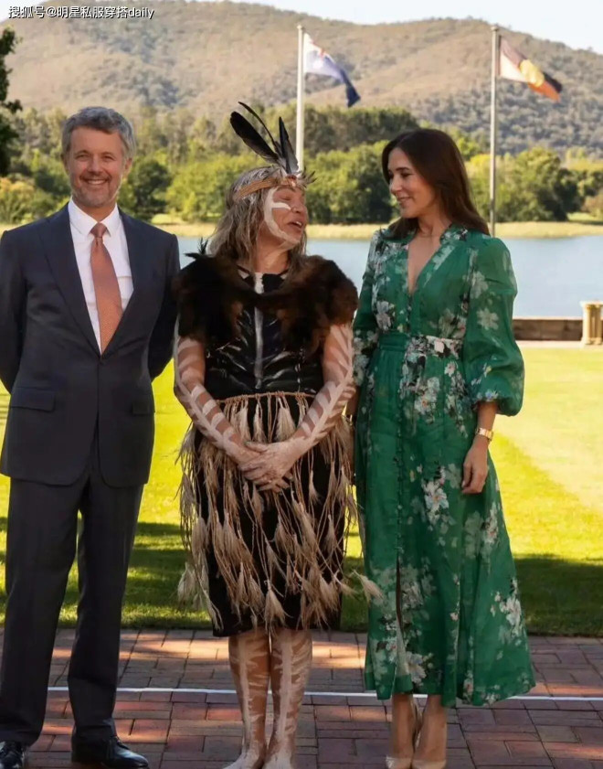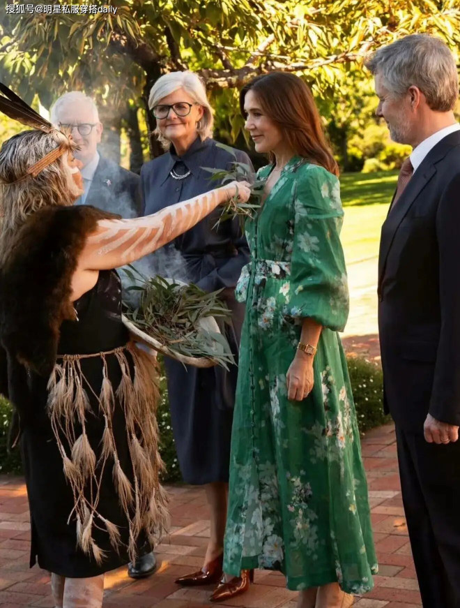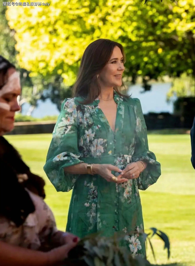 玛丽王后也很喜欢穿印花裙,绿色印花裙是今年欧洲王室很喜欢的色彩,不管是莱蒂齐亚还是她,都上身了绿色长裙,带有春日气息,但不显得过于夸张。