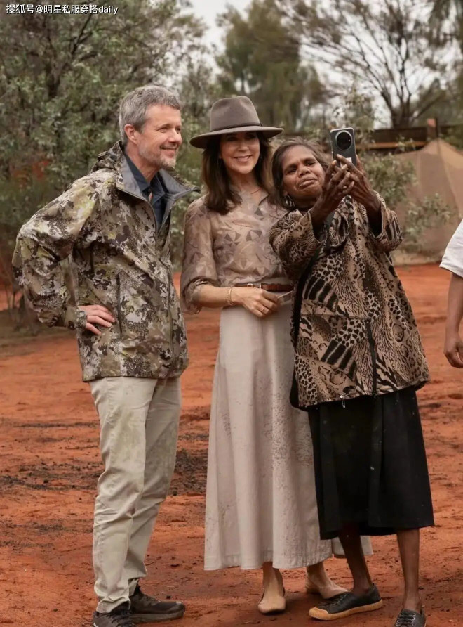 玛丽王后身穿一件裸色系衬衫上衣,下班森搭配一条浅咖色半身长裙!这次,她佩戴了一款棕色牛仔帽,时髦又大气!