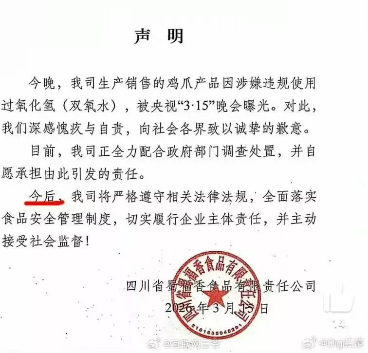 事件在315曝光后,这家企业对外界表达了歉意,承诺今后将严格遵守相关法律法规啥的。