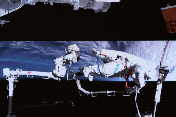 神舟二十一号航天员完成第二次出舱。张帆摄
