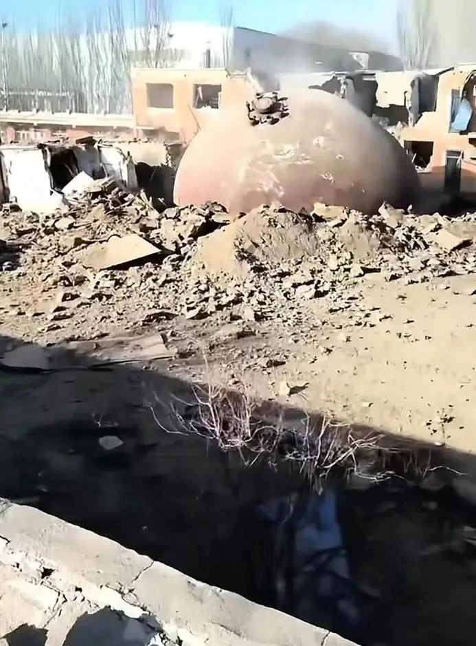 王丽娜和赶来的村民们一起到了隔壁院。他们这才看清楚物体的样貌——是一个巨大的红棕色“铁疙瘩”,“把地面砸出一个看上去有两三米的坑,地面上的部分还有两层楼高”。