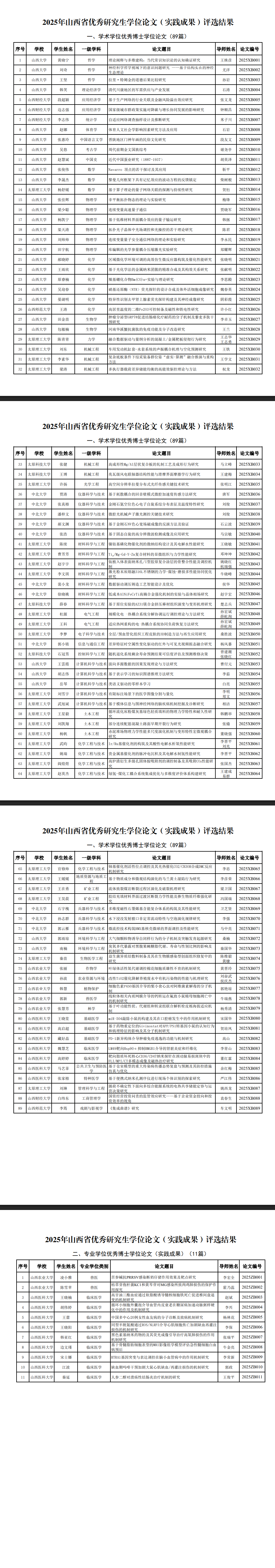 2025山西优秀研究生论文公示中国科学报