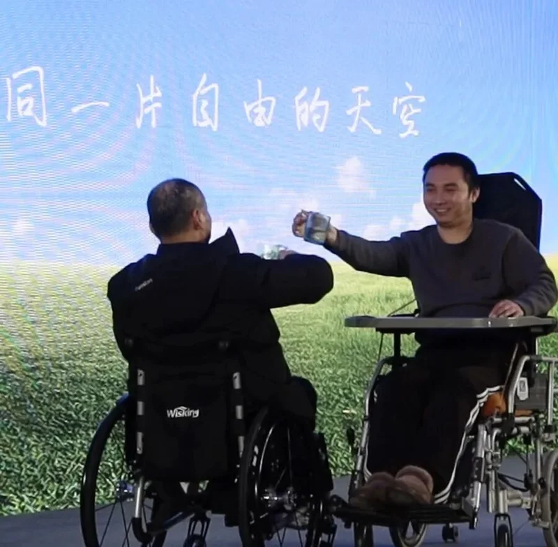 两位NEO受试者的一次历史性“碰杯”,图源:文汇报