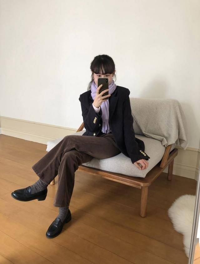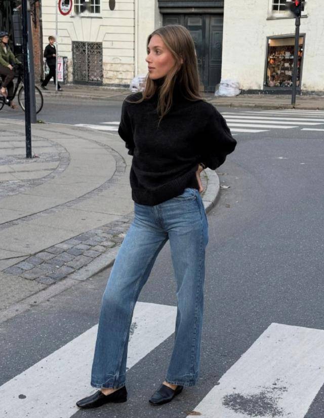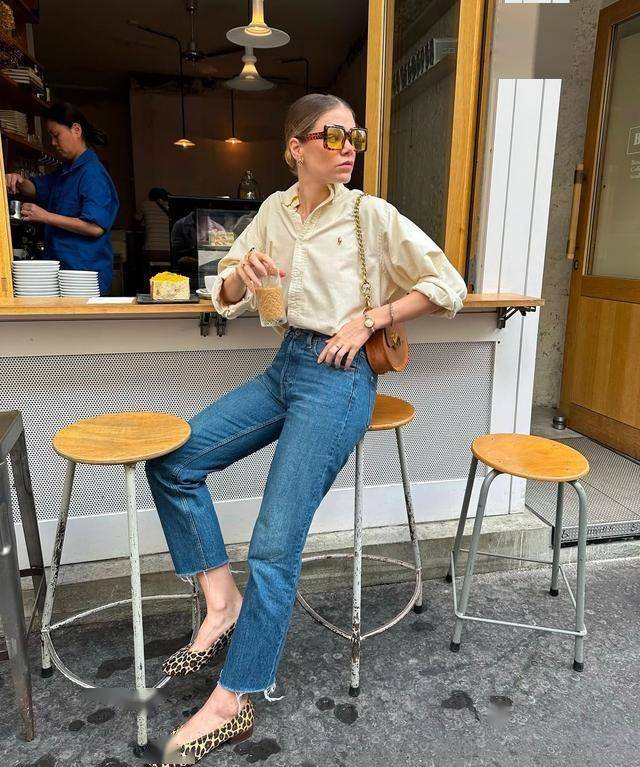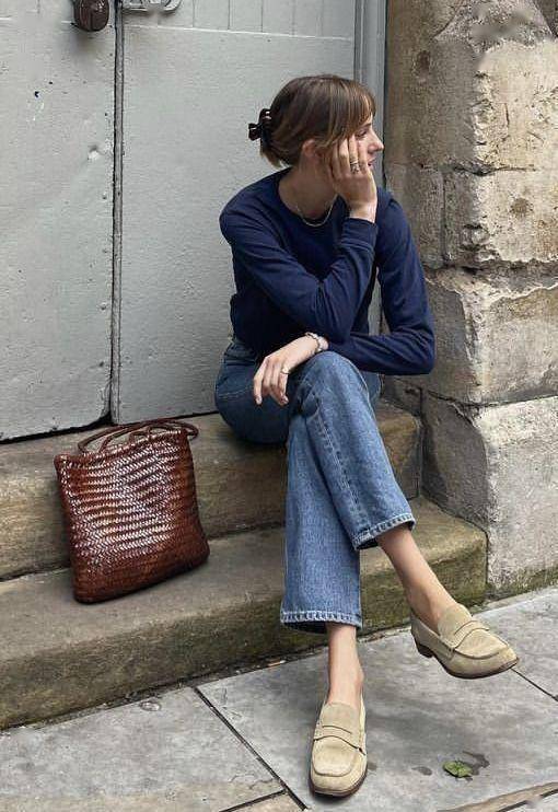 九分直筒裤+薄底鞋乐福鞋,低调中透露着一丝格调,尽显好气质。