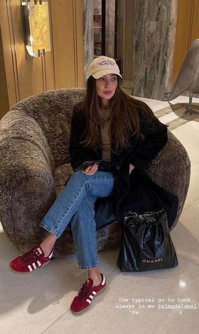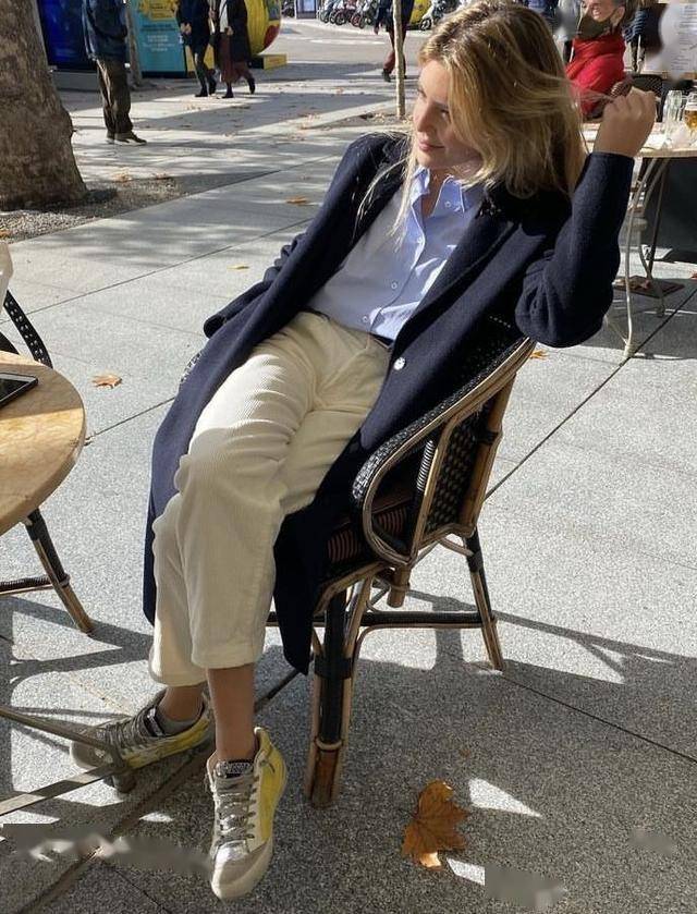 米白色的九分牛仔裤,搭配运动鞋的那一刻,有种不费力的松弛感,瞬间就能摆脱大衣+衬衫的严肃。