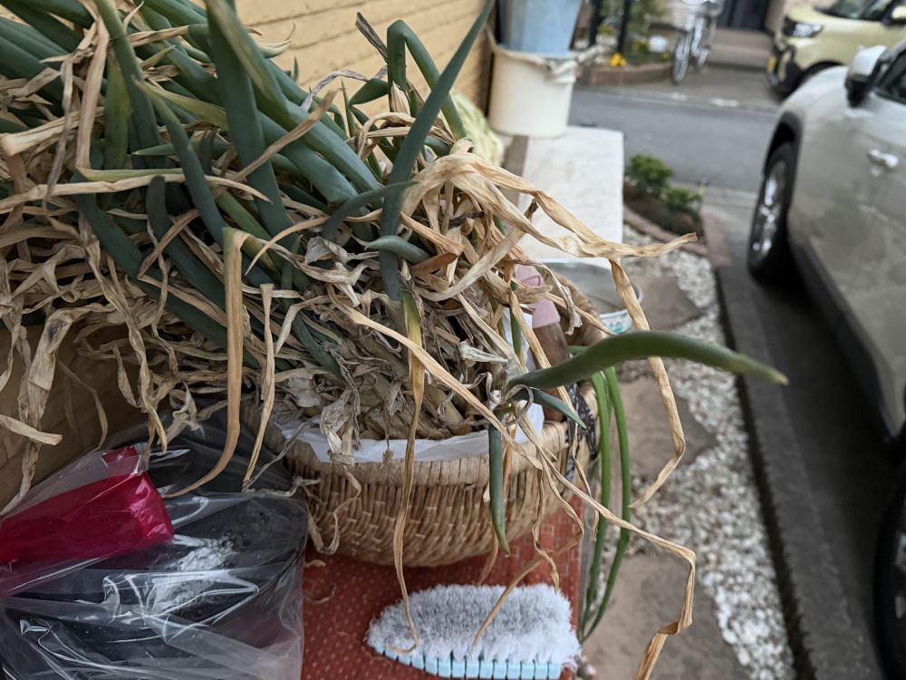 我家的大葱,拔出来就是这样干着,放在外面的。