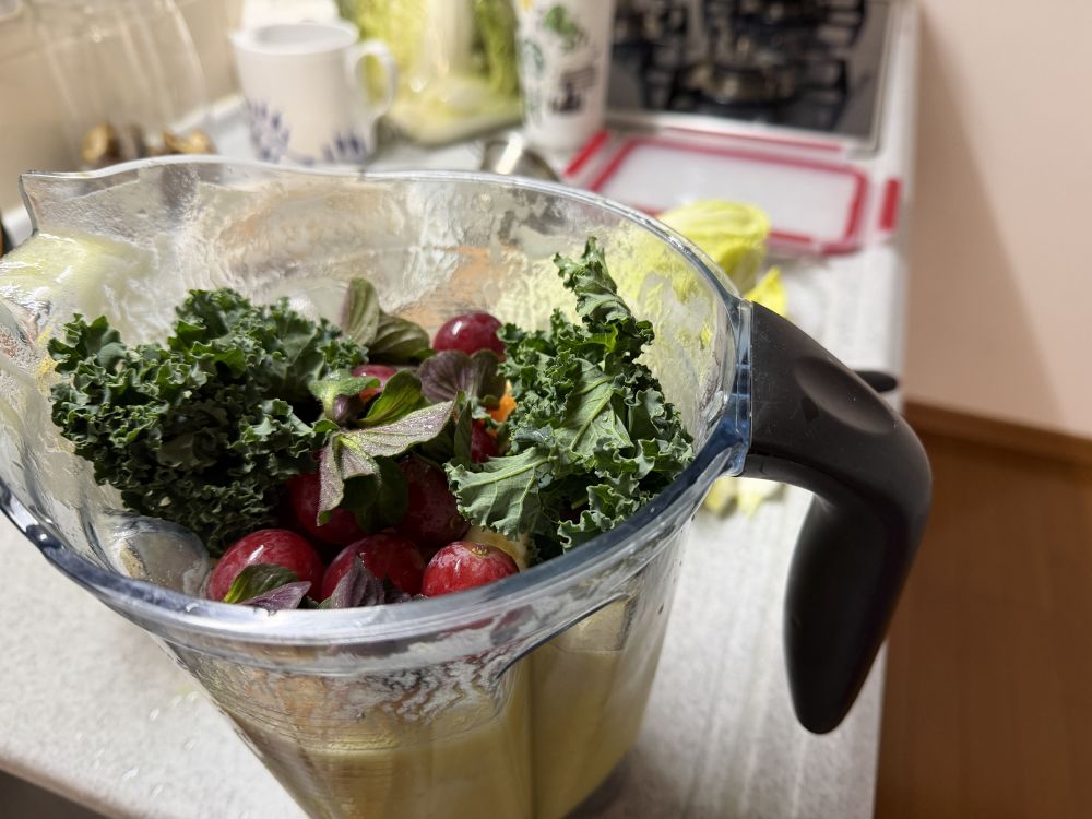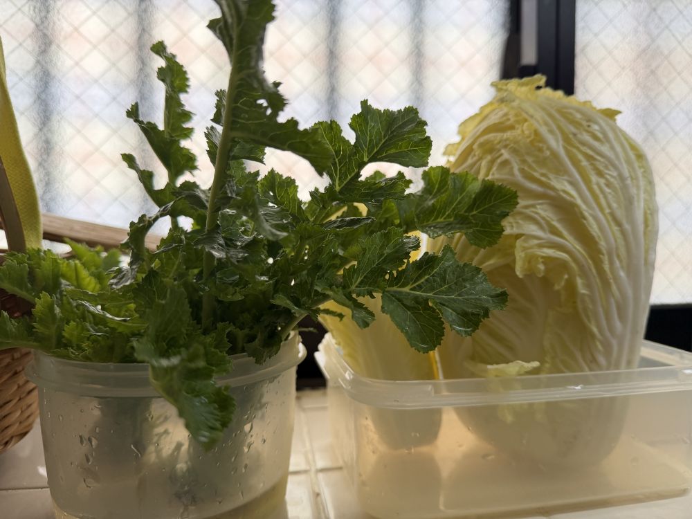 在东京羽衣甘蓝是可以在地里越冬的植物。我家院子里种了很多,每天早上出去拔叶子吃。还有春菊,各种生菜,在东京都是冬季农作物。现在大地里还有好多。所以这类蔬菜都不用储存,现吃现拔。