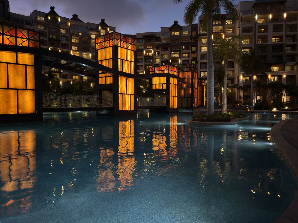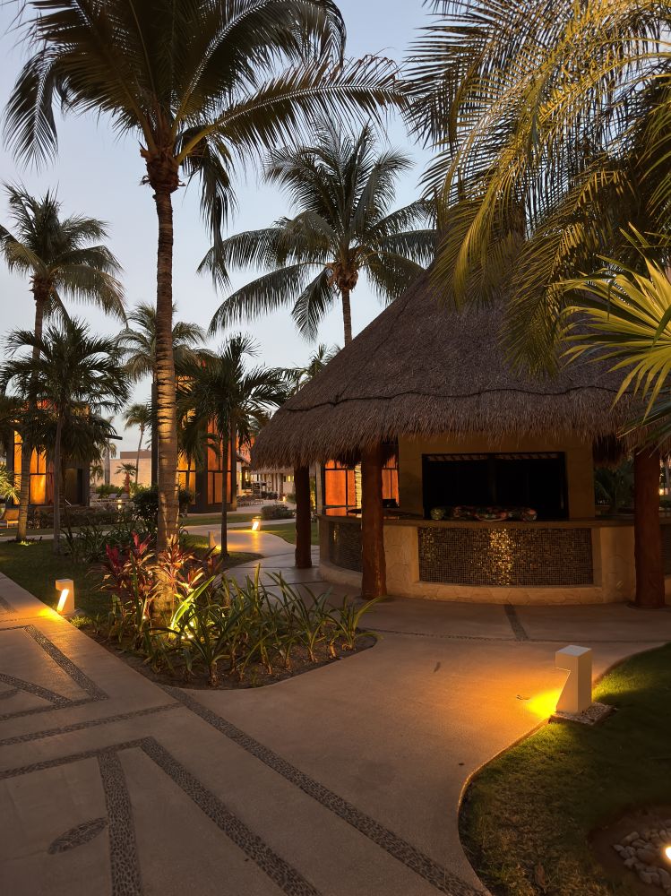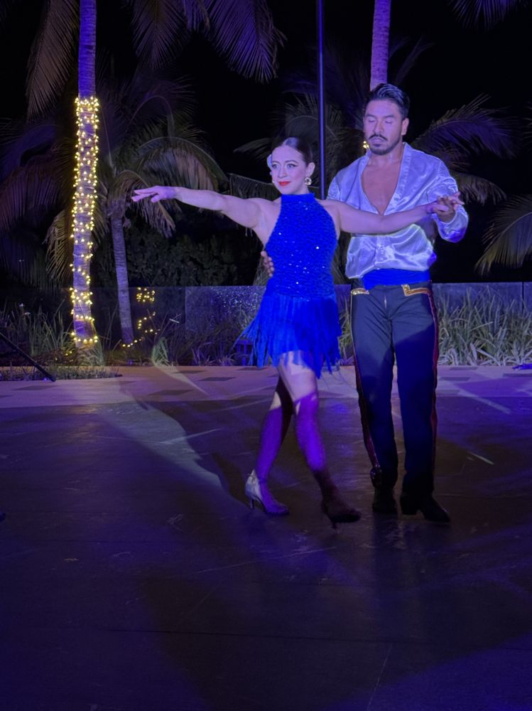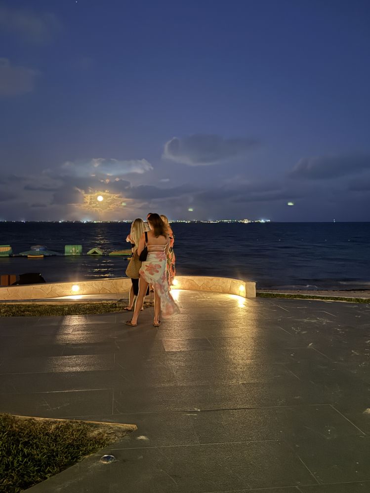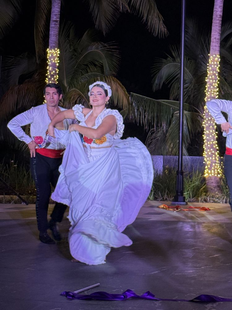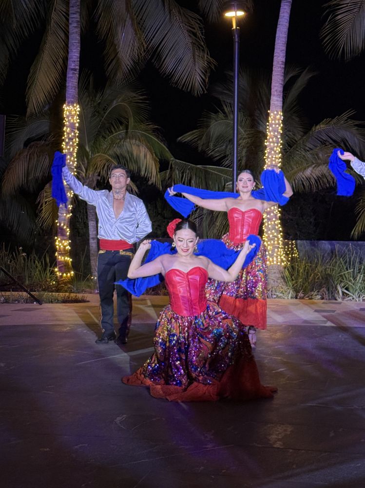 晚上凉风加身,一台带西班牙风格的墨西哥舞蹈在夜空下散播出明快的韵律。 几乎每天晚上都有一台文艺节目,朋友说:消食。也有人寻得“月上柳梢头,人约黄昏后”的意境。