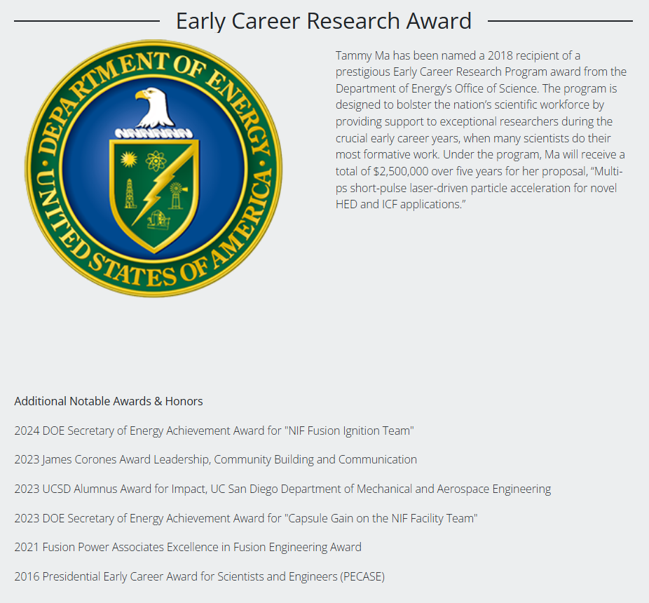 这不仅是科学的胜利,也是谭美多年来坚持“大科学、团队协作”理念的胜利。她认为,如此宏大的科研项目,绝非单打独斗能够完成。“你需要优秀的团队、大量的资源,还需要科学界和政府的支持。而在利佛摩,这些条件都具备了。”