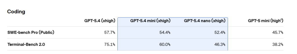 从OpenAI公布的评测数据来看,GPT-5.4 mini在编程及多模态任务上的表现尤为突出。