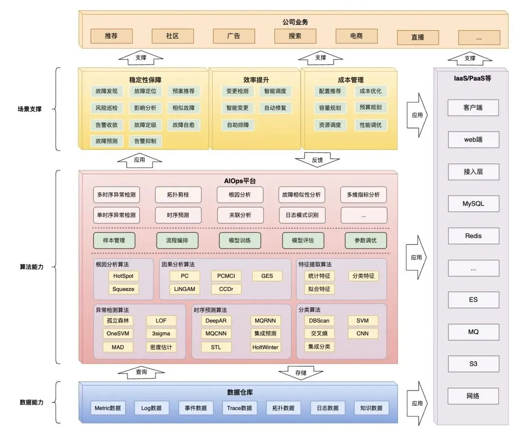 AIOps(AI + IT Operations):用人工智能处理监控告警、定位故障根因的技术方向。简单说,就是让AI替代人工盯着系统跑。