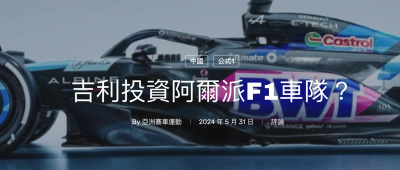 早在2024年,阿尔派Alpine F1车队由于战绩不佳+经营混乱陷入卖身传闻,当时就有传吉利或许会以此为契机收购Alpine车队股权进入到F1赛事中。