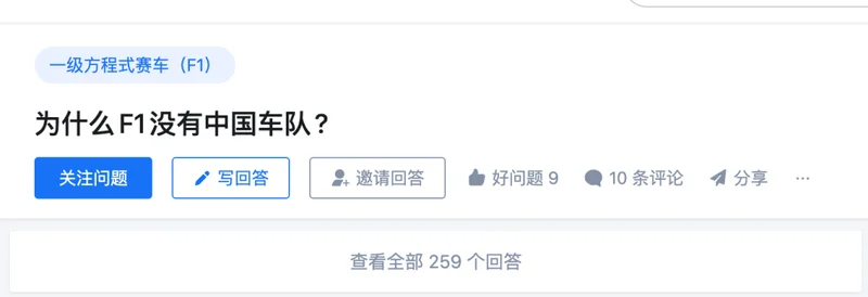 其实类似的反应,在几年前知乎一条关于“为什么F1没有中国车队”的问题上已经反复出现,大家讨论的焦点基本集中花重金在欧美体系的赛车赛事中找存在感实在没有必要。
