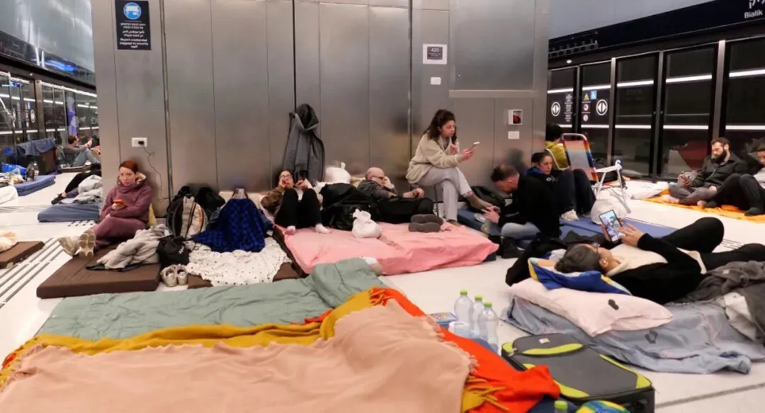 3月11日,民众在以色列中部城市拉马特甘一处地铁站过夜 / 新华社发(吉尔·科恩·马根摄)