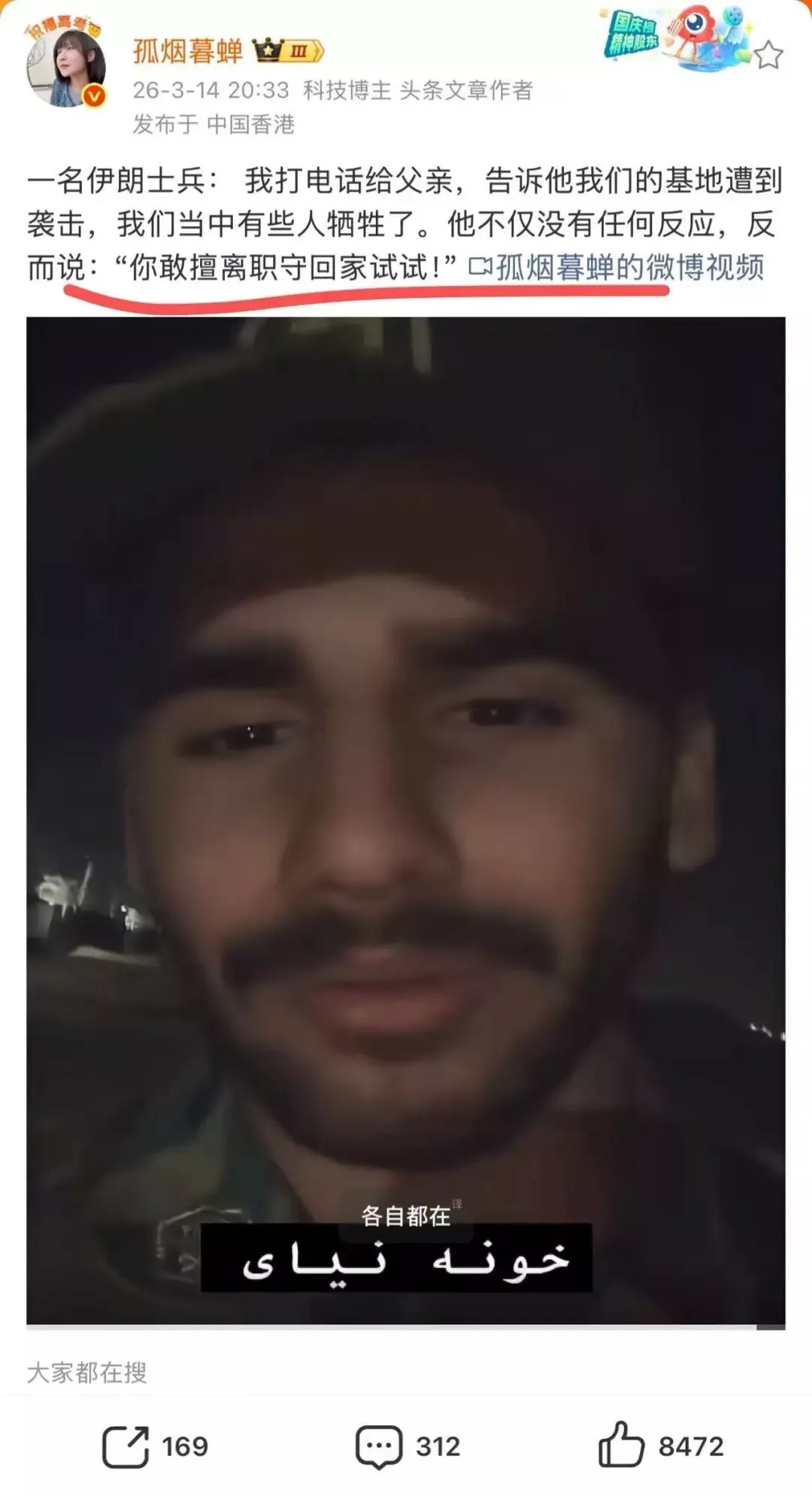 “木白作者,你在民生领域写的文章都很有见地,也是因为这个原因,一直以来都支持你,也打赏上过很多次你的文章,但伊朗和美国发生战争后,你的文章看得让人很反感,以前看到评论区有人骂你屁股歪了,我还会帮助回怼,现在看来,你确实是屁股歪了。