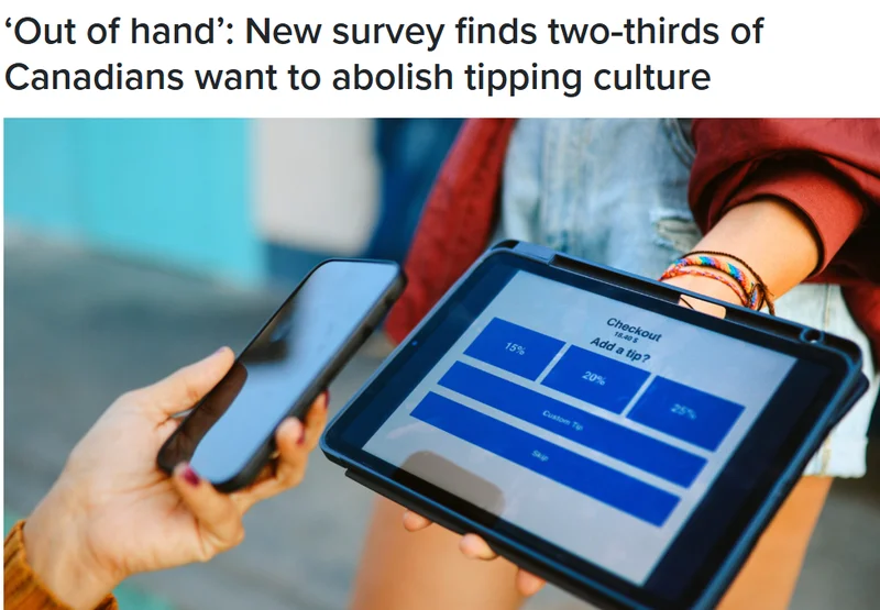 一项最新全国性调查显示,加拿大人对小费文化的不满正在达到临界点。越来越多的人认为,小费已经“失控”,应当彻底取消。