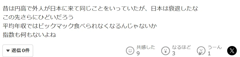 “以前日元升值的时候,外国人来日本也会这么抱怨(物价贵),但现在日本确实衰退了。