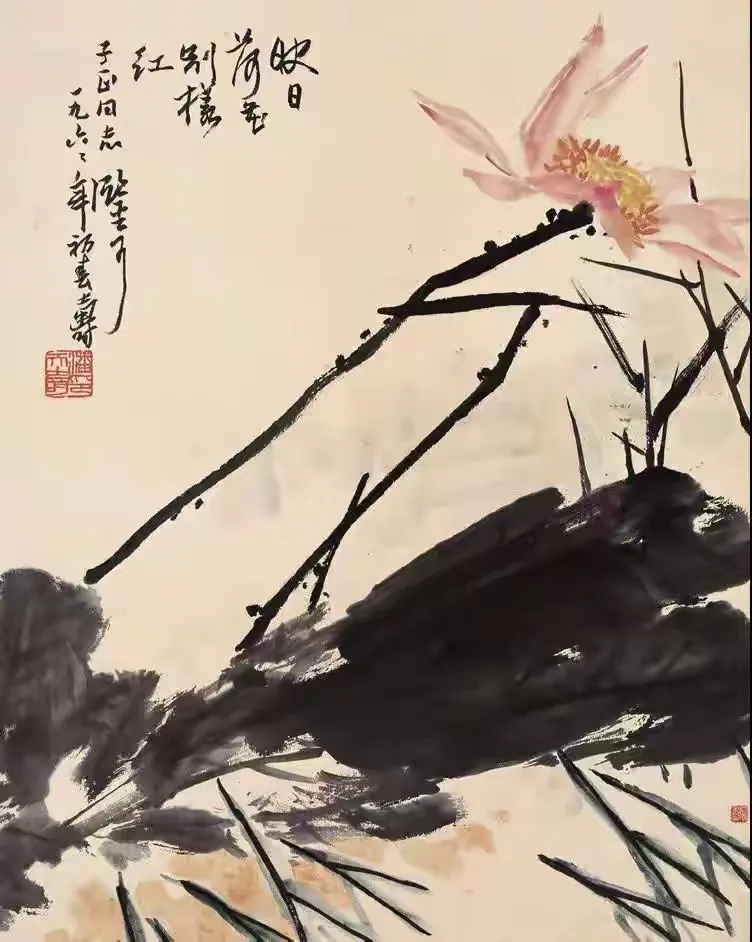 什么叫“造险”呢?就是你自己给自己找麻烦,不在那儿平平稳稳地构图。比如画一块大石头,正常人可能会把它放在画面中间,稳稳当当的。但潘天寿不,他偏要把一块巨无霸似的石头塞在画面边缘,感觉马上就要倒出去了,压得人喘不过气来,让你替他捏一把汗:“哎呀,这画是不是要翻掉了?”这就是“造险”,故意打破那个四平八稳的“老实”劲儿。