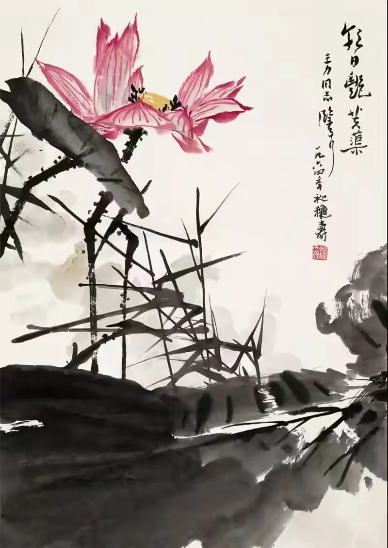 另外,这个“不老实”还体现在创作手法上。潘天寿先生后来特别喜欢画指画,就是不用毛笔,直接用手指头蘸墨在纸上画。你说这“老实”吗?毛笔是专门的工具,多好控制啊。手指头没毛,蓄不住墨,画出来的线条毛毛糙糙、断断续续,还容易弄得到处都是。这太“不老实”了!但正是这种不老实,创造出了毛笔达不到的效果——那种线条特别生辣、古朴、有力量感,像屋漏痕,像锥画沙,金石气十足。这就是艺术家的心眼活泛,他不满足于常规的手段,非要剑走偏锋,搞出点新花样来。