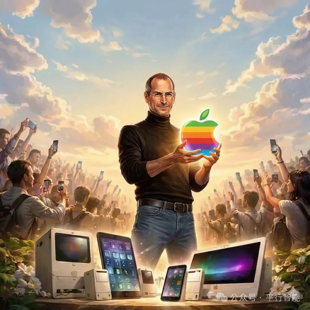 1976年,史蒂夫·乔布斯(Steve Jobs)创立苹果公司(Apple),并以一只被咬掉一口的苹果作为品牌标志。这一标识既被广泛认为是对图灵的致敬,也象征着对智能科技的勇敢探索与持续创新。苹果公司开创了个人电脑时代,让计算机从专业机房走向普通人家的桌面,真正开启了计算机普及化、个人化的浪潮。此后,乔布斯又将个人电脑、智能手机、移动互联网与智能生态融为一体,把原本只存在于实验室、研究所的智能技术,变成普通人触手可及、随身携带的工具。他让智能走出机房、走出论文,走进日常生活、走进每一个人的手中。这只苹果,标志着智能从专业化、理论化走向大众化、普及化、生活化,真正开启了智能普惠于全人类的时代。