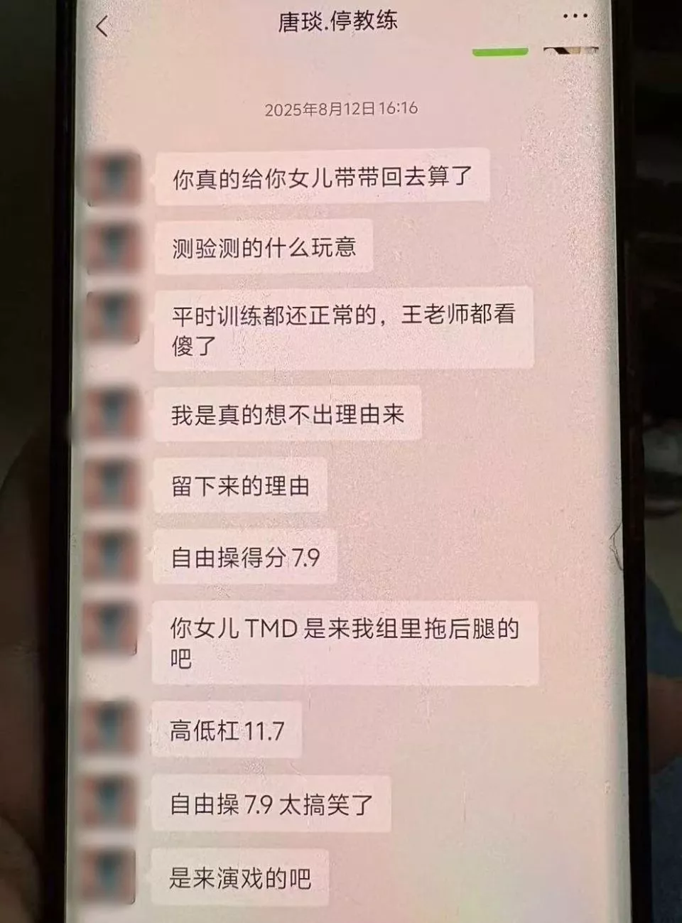 2025年8月,唐琰接连对晋守宣贬低小佳:“你女儿是TMD来我组里给我拖后腿的吧”“再练他妈的也没有用”……而同一时期的日记里,小佳两次提到自己“脚痛”。