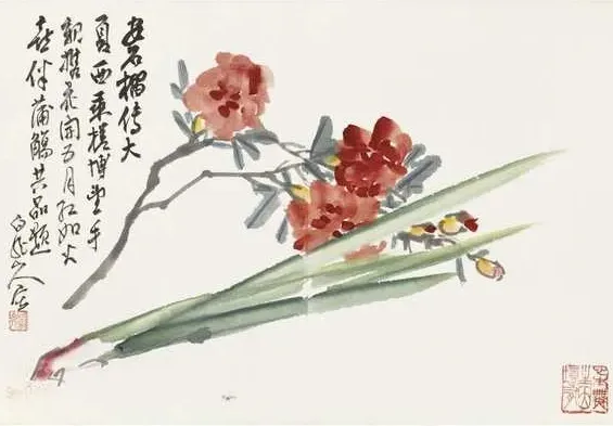 6.安石榴传大夏西,乘槎博望手亲携,画开五月红如火,喜伴蒲觞共品题。