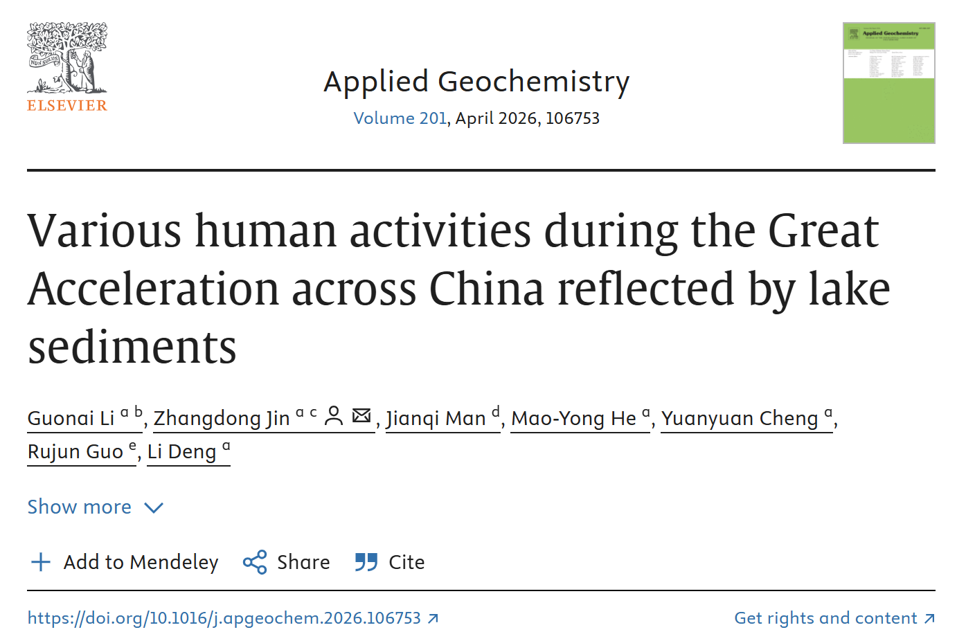 该研究成果发表在《应用地球化学》上。