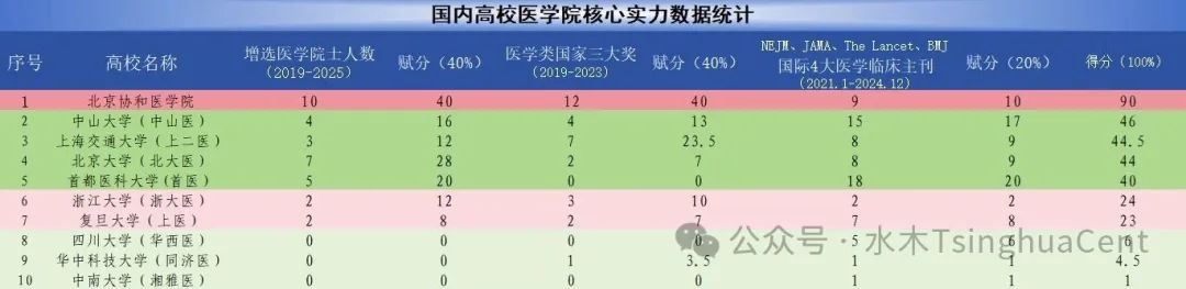 国内高校医学院核心实力数据统计水木TsinghuaCent