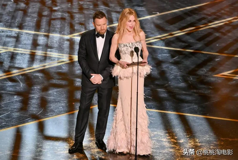 不仅与伊万·麦克格雷格同框,掀起了一波《红磨坊》上映25周年的现象级回忆杀,更作为重磅嘉宾,将当晚最大的荣誉——最佳影片大奖颁给了《一战再战》。