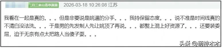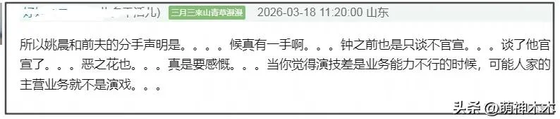 至于“姚晨逼迫侯雯元和钟楚曦分手”的爆料,有网友表示怀疑,可能是时间线确实不清白,男方提前下手甩锅。而且,还有网友拿姚晨和钟楚曦的态度夸侯雯元有手段,称他是钟楚曦唯一官宣的男友,也能让姚晨出来发离婚官宣。