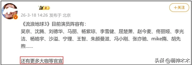 《流浪地球3》官宣冯小刚惹争议萌神木木