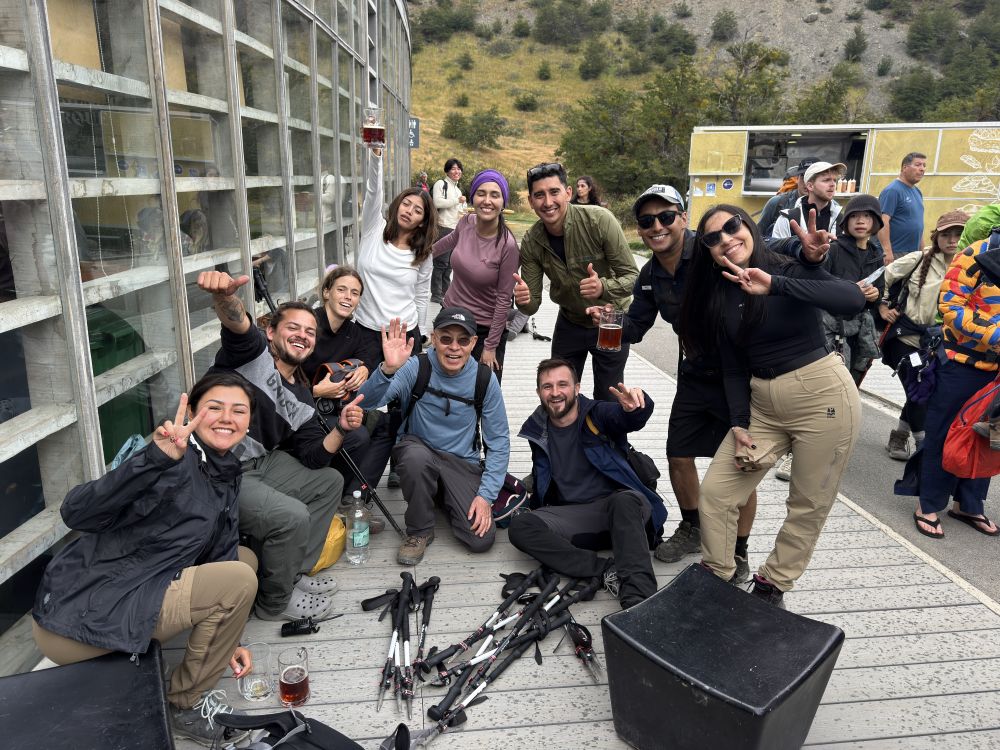 回到游客中心等待巴士的时候,再次和那些目睹我险些摔入激流的西班牙-智利徒步者们相遇。他们热情邀请我和他们合影,他们觉得我是个上帝眷顾的幸运儿。非常感谢这些年轻人,他们当时竭力帮助我。