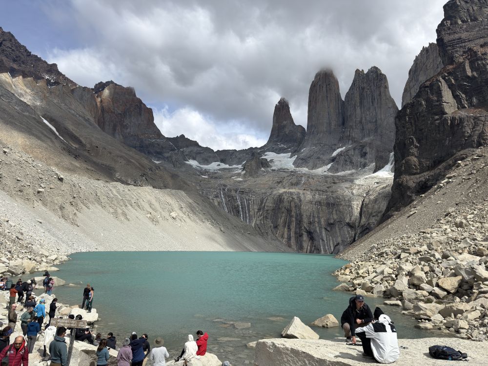 我们在三塔峰等了一个小时,也没有等到云开雾散。没看到蓝天白云下的百内三塔让人多少有些遗憾。但是,和那些只看见三塔峰完全笼罩在云雾中的徒步者相比,非常满足了。