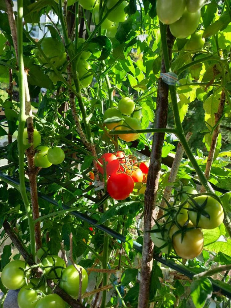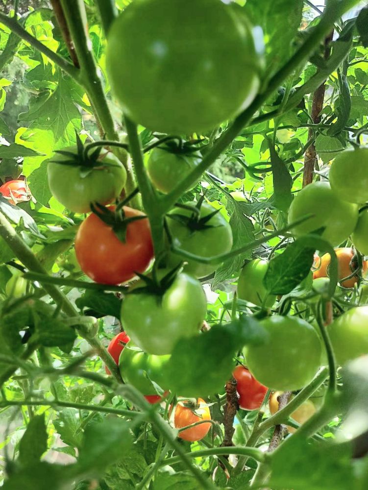 西红柿在北美地区极易种植,从4月到10月,野蛮生长;几根枯枝扎个篱笆,浇水了事。无论房前院后,阳台露台,盆盆罐罐,种植三五株狼桃,番茄,爱情果,西红柿,随你怎么叫;稍加照抚浇水,观其抽枝散叶,招蜂惹蝶,开花结果;由此获得的乐趣和身心放松,不言而喻,你知我知。